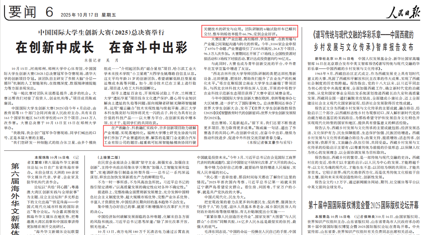 精心组织师生团队积极参赛、备赛,推进重点项目的挖掘与培育,持续优化团队结构,并通过系统性的项目培育与打磨,为参赛项目取得历史性突破奠定了坚实基础。