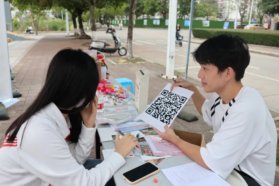 活动一经举办,同学们便热情踊跃地参与。现场工作人员各司其职,有条不紊地引导前来参与活动的同学们,为他们提供纸与笔,讲解如何去完成一张充满祝福的明信片。同学们拿起笔,在明信片上认真写下一句句真心的祝福,绘下一幅幅充满童真的图案。每一个字,每一张图,都饱含着同学们的深切的关爱与诚挚的祝愿。在传递爱心的过程中,工作人员也为同学们送上了精美的礼品。