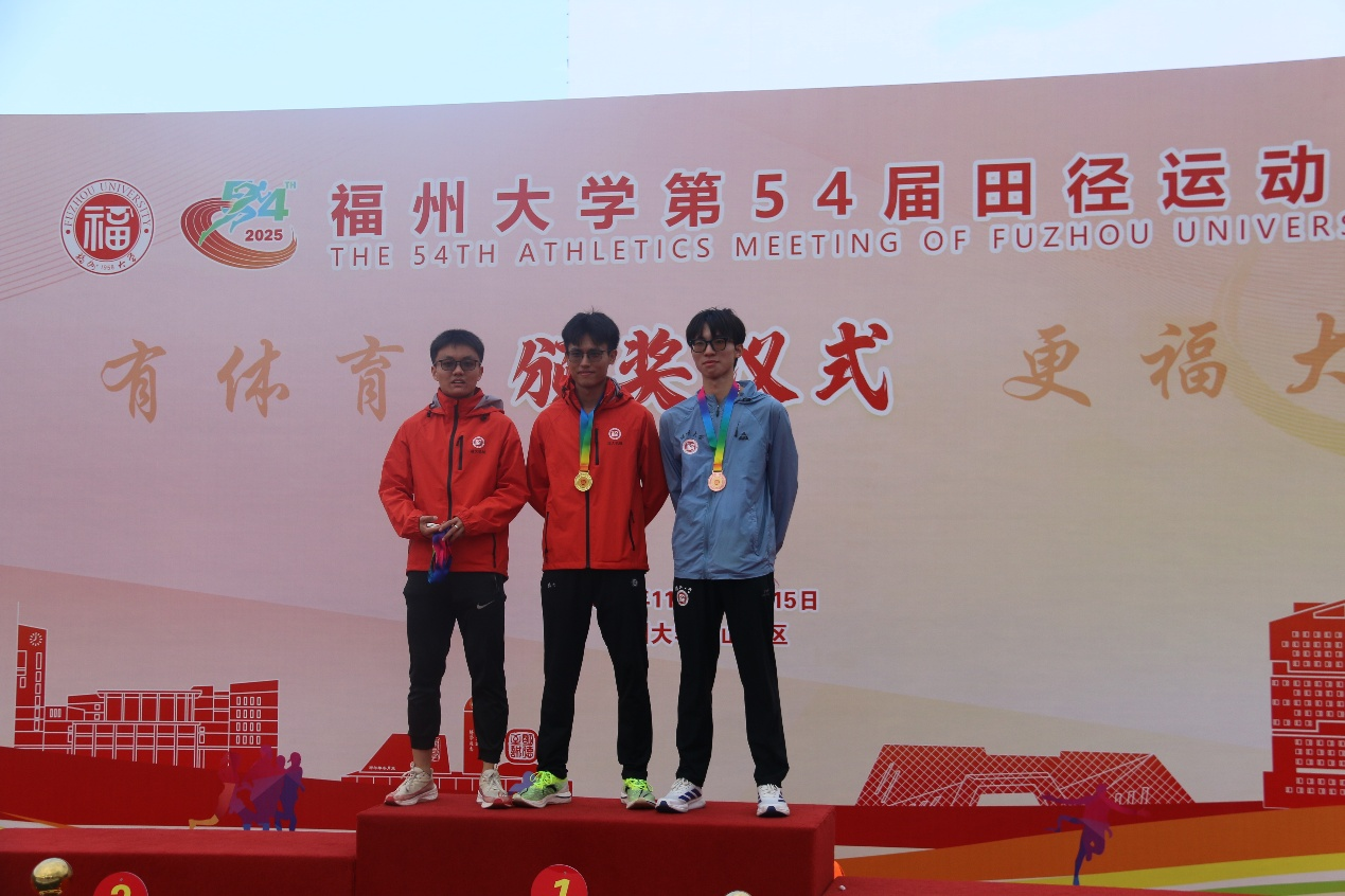 罗平安同学荣获男学甲5000米决赛第一名并创造了校运会新纪录、男学甲3000米决赛第一名、男学甲1500米决赛第三名
