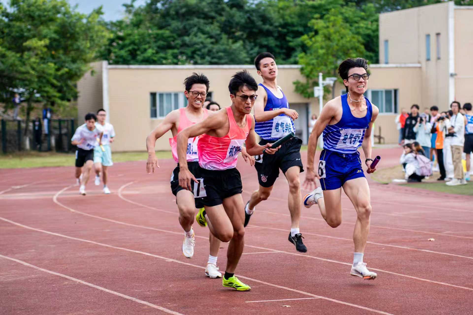 詹天宇、王超、潘佳豪、陈威同学齐心斩获男学甲4×100米接力第二名