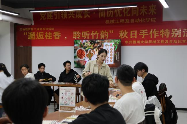 团委、学生会及研究生会学生骨干在桂花与竹篾的香气里,完成了一次“有味道、有声响”的劳动实践课堂。