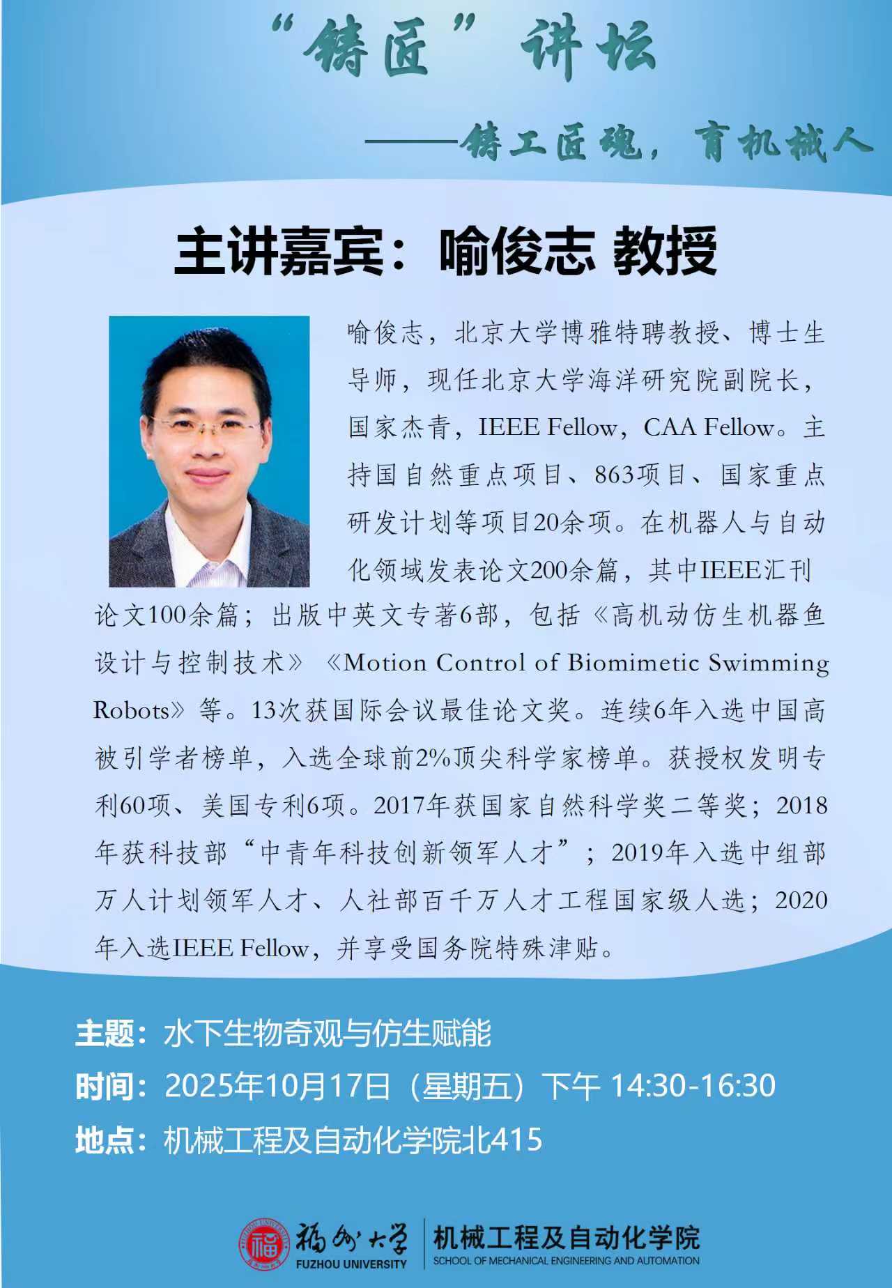 铸匠”讲坛 ——铸工匠魂,育机械人(水下生物奇观与仿生赋能)